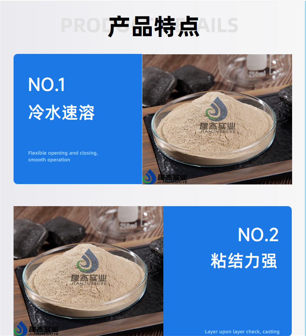 產(chǎn)品介紹:建杰牌預(yù)糊化淀粉是以玉米淀粉為原料經(jīng)過改性而成。具有良好的溶液增稠性、水溶性、懸浮性、膠液穩(wěn)定性、成膜性、保水性,黏合性等。冷水速溶,免除了加熱糊化的復(fù)雜工藝。廣泛應(yīng)用于冶金、型煤、建材、金屬鑄造、飼料、石油鉆井、肥料、制香、造紙等……