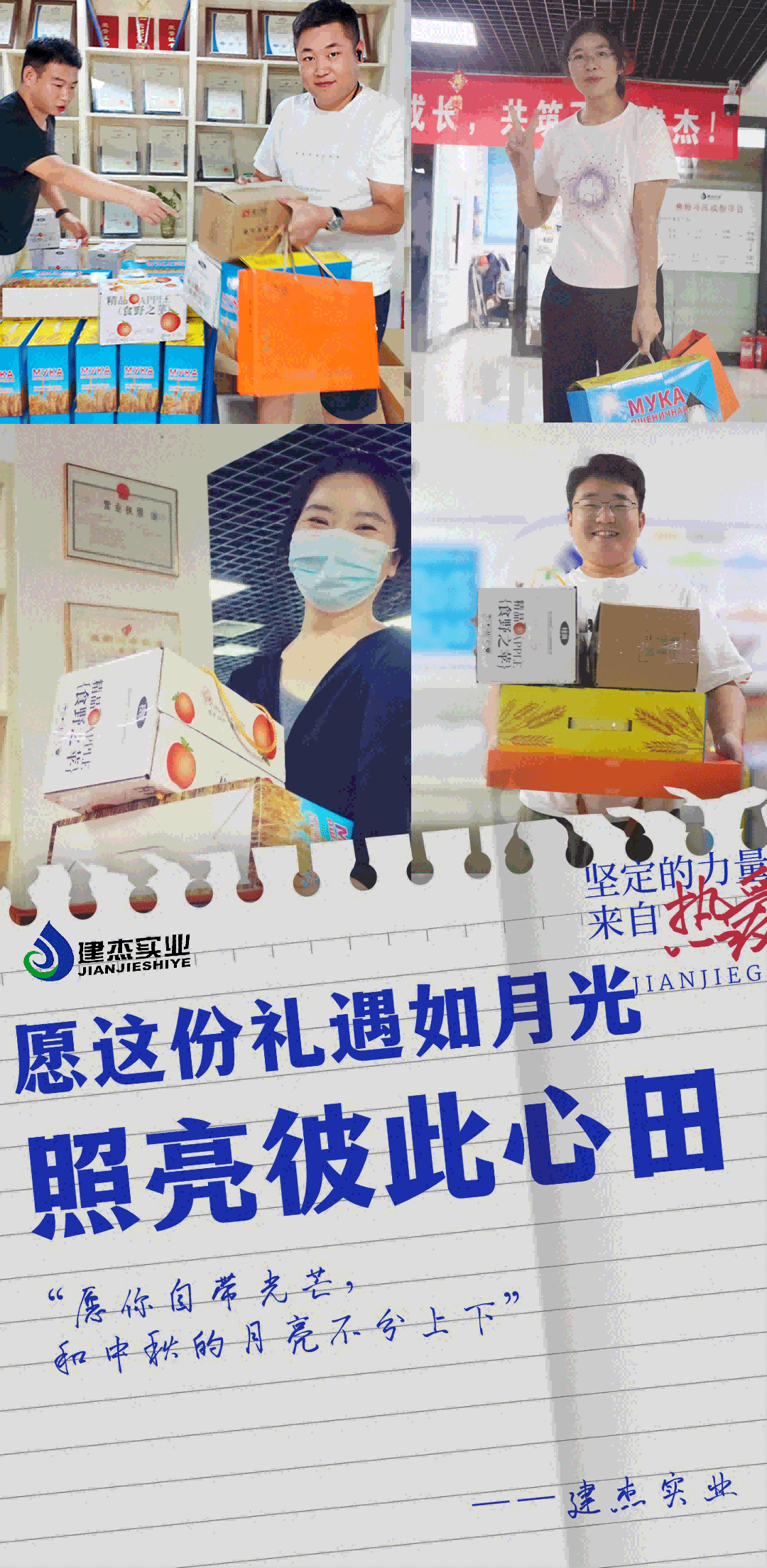 9月11日,陽(yáng)光明媚,建杰實(shí)業(yè)鄭州總部的辦公樓內(nèi)洋溢著一片溫馨與喜悅的氛圍。這*,全體員工迎來(lái)了一份來(lái)自建杰的特別驚喜——一份精心準(zhǔn)備的中秋節(jié)日福利。這份禮包不僅裝滿(mǎn)了精選的節(jié)日禮品,更承載著建杰實(shí)業(yè)對(duì)每位員工辛勤付出的深深認(rèn)可與感激。