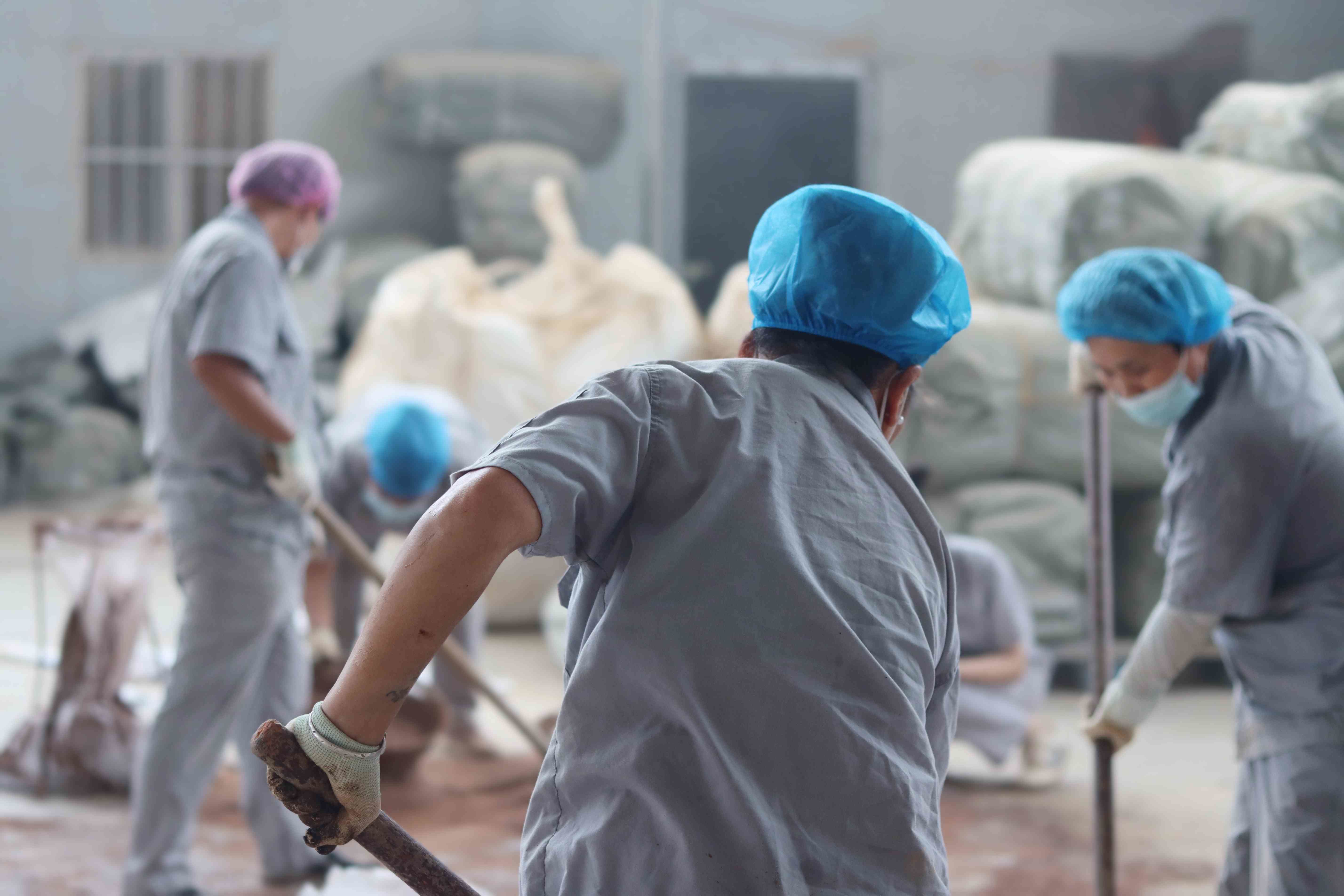 在建杰實業(yè)淮陽廠區(qū),廠房內(nèi)的溫度隨著機器的轟鳴聲持續(xù)升高,高溫可達41℃。奮戰(zhàn)在前線的工人,正熱火朝天地進行著粘合劑的生產(chǎn)作業(yè),汗珠夾雜著熱浪,順著臉頰往下流。但他們的眼神卻異常堅定,每一個生產(chǎn)環(huán)節(jié)都傾注著他們對工作的堅守。